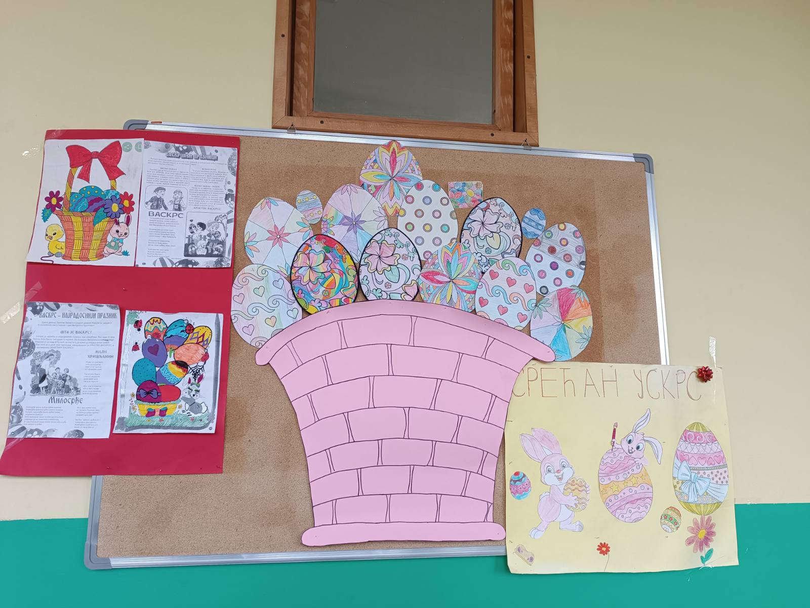 Ученици у продуженом боравку су обележили Ускрс веселим активностима. Поводом најрадоснијег празника правили су корпице, шарали и фарбали јаја и израђивали паное како би украсили своје учионице.