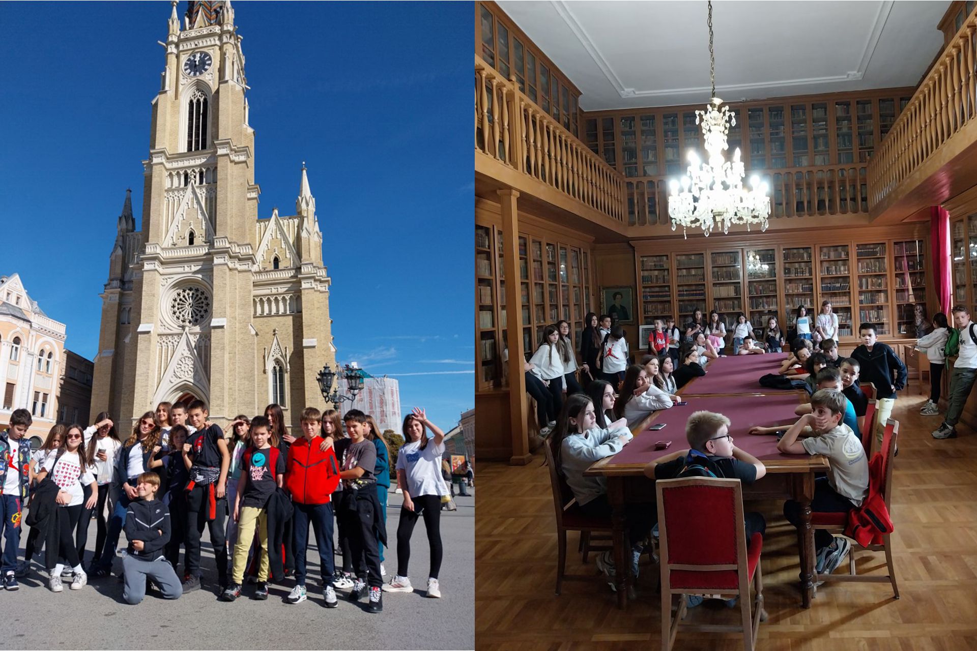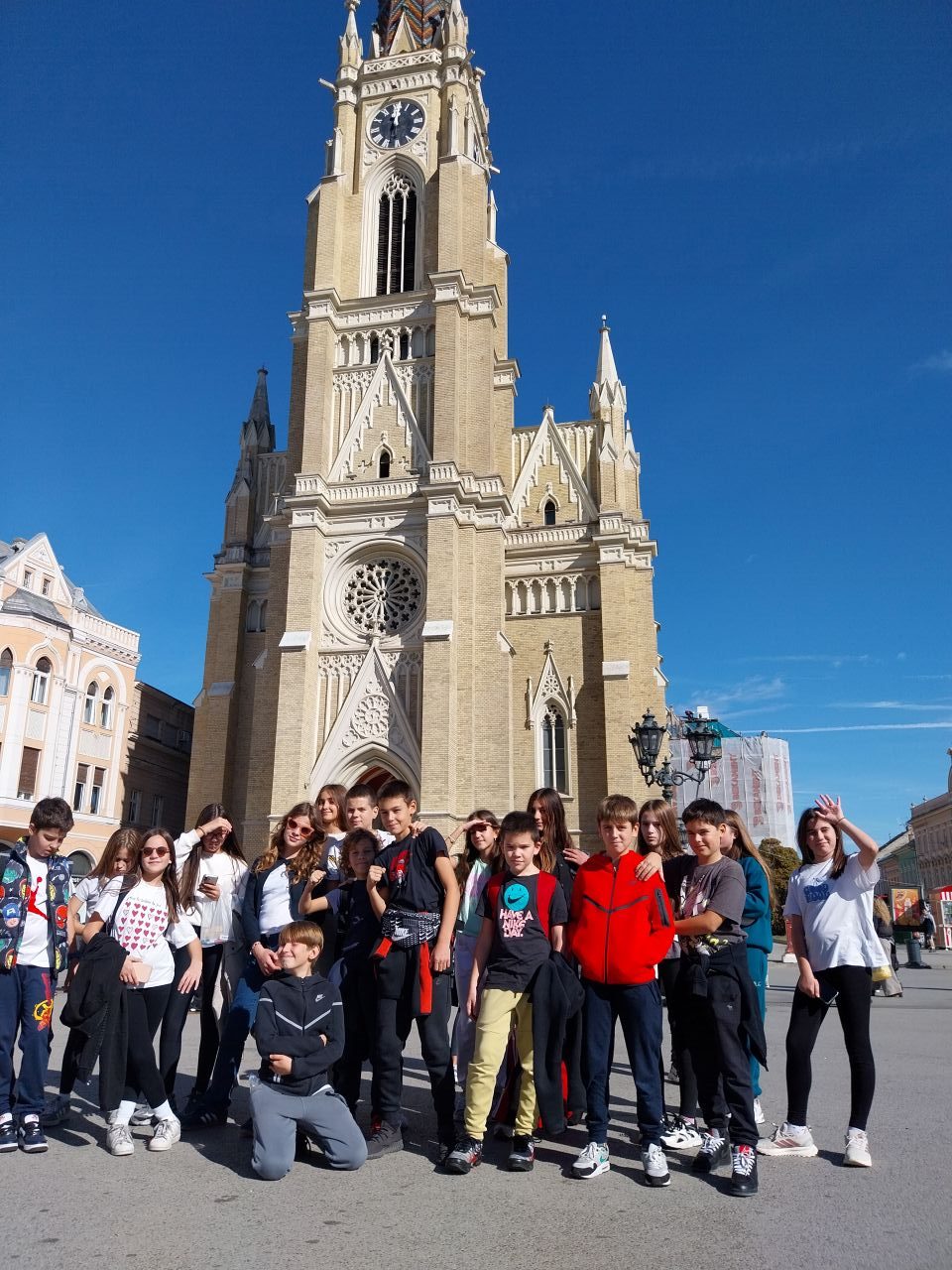Ученици петог разреда наше школе провели су диван дан на излету у Новом Саду и Сремским Карловцима.  Прошетали су тргом испред Катедрале и Змај Јовином улицом у Новом Саду, а онда и Петроварадинском тврђавом.  У Сремским Карловцима су обишли Богословију, Патријаршијски дом, Саборну цркву и Карловачку гимназију.  Иако су уживали у свакој од знаменитости, ученицима се највише допало слободно време за игру и дружење.