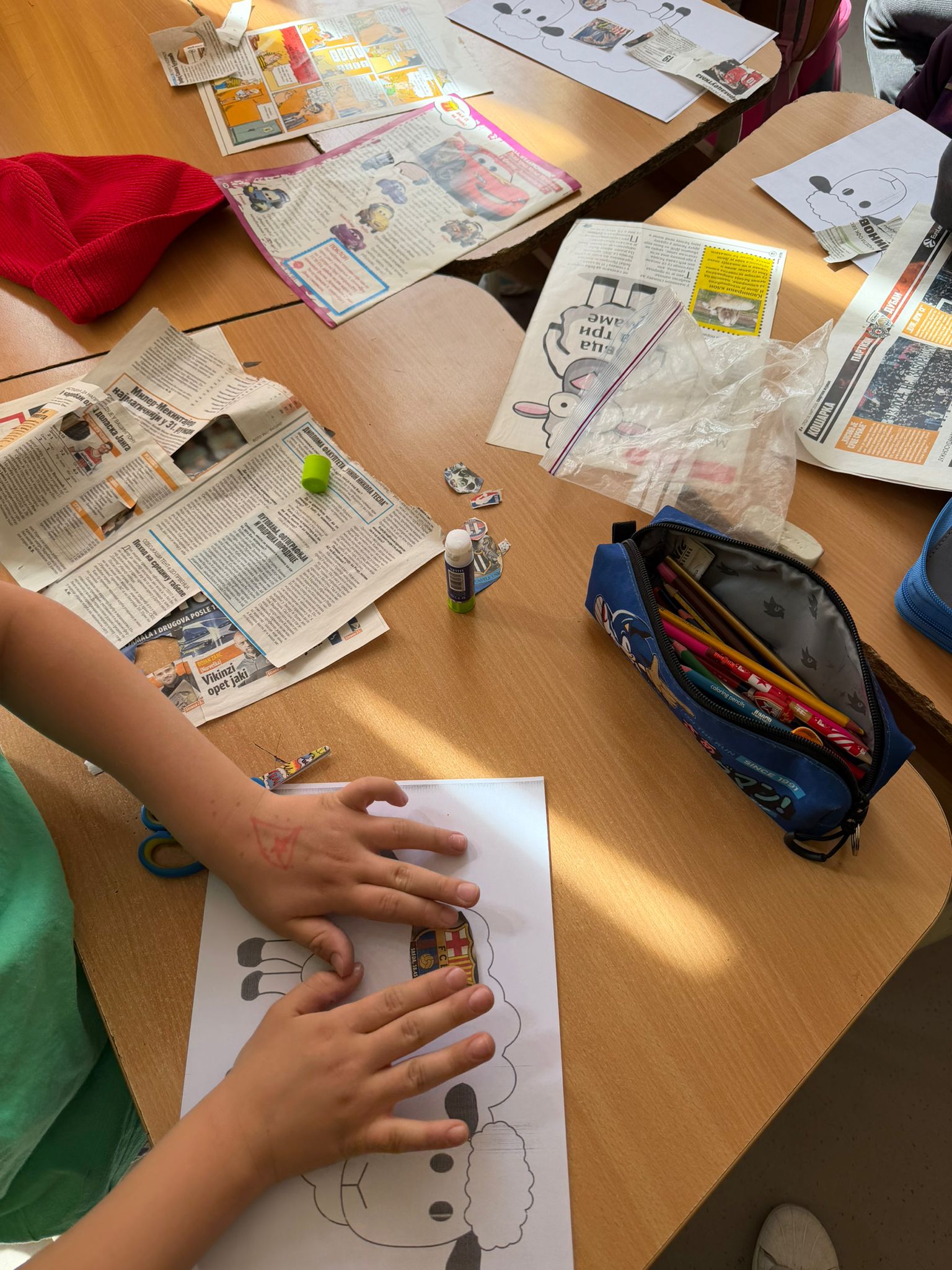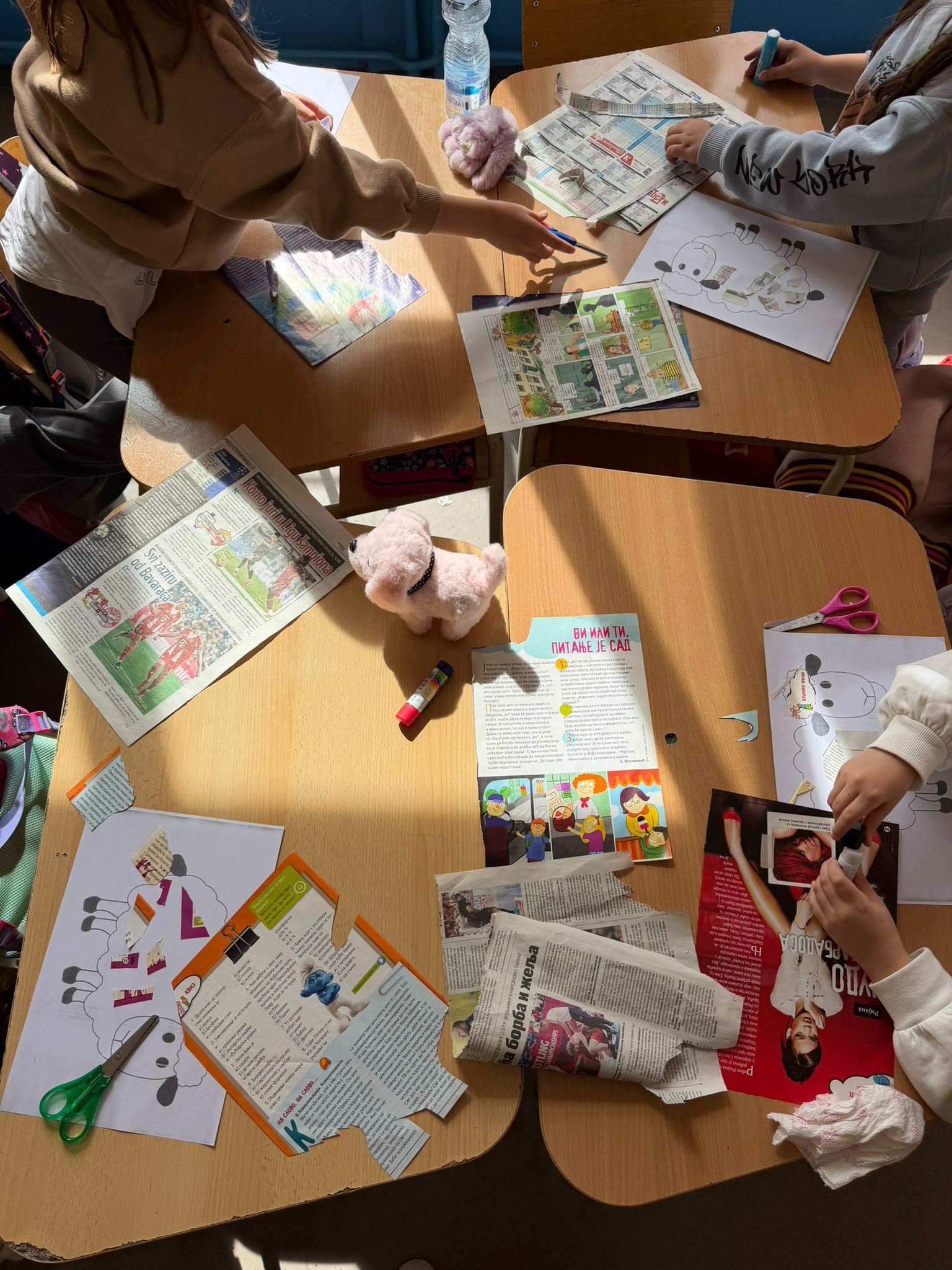 Главни циљ ове активности био је да деца практично науче како предмети које сматрамо отпадом могу добити потпуно нову употребну и естетску вредност. Уместо коришћења класичног колаж папира, који представља потрошни материјал, ученици су као основни ресурс користили старе новине, магазине и рекламне летке. Задатак је био да се цртеж овчице „обуче”, али не помоћу бојица, већ колаж техником. Црно-бели новински чланци, наслови и различити фонтови дали су овчицама специфичан, модеран изглед који верно имитира текстуру вуне.