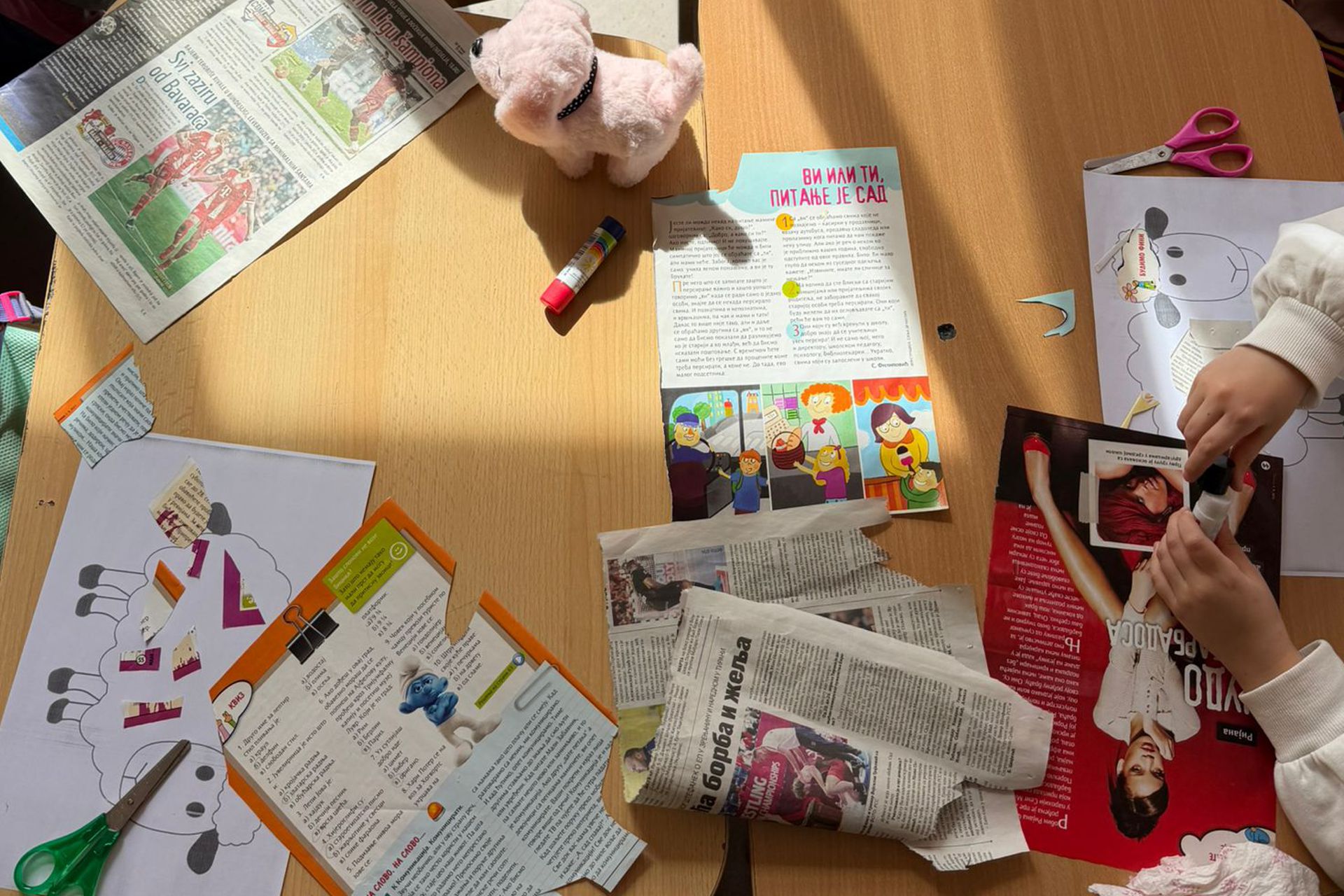 Главни циљ ове активности био је да деца практично науче како предмети које сматрамо отпадом могу добити потпуно нову употребну и естетску вредност. Уместо коришћења класичног колаж папира, који представља потрошни материјал, ученици су као основни ресурс користили старе новине, магазине и рекламне летке. Задатак је био да се цртеж овчице „обуче”, али не помоћу бојица, већ колаж техником. Црно-бели новински чланци, наслови и различити фонтови дали су овчицама специфичан, модеран изглед који верно имитира текстуру вуне.