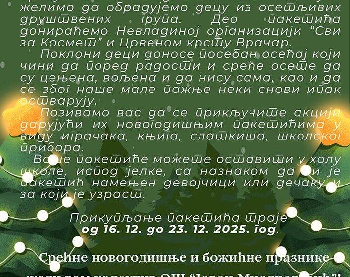 Са намером и жељом да обогатимо књижни фонд школске библиотеке и учинимо га разноврснијим и занимљивијим за наше младе читаоце, позивамо све ученике и њихове родитеље да се прикључе нашој новогодишњој акцији ,,Поклон књига школској библиотеци“  Са нестрпљењем очекујемо  књиге […]