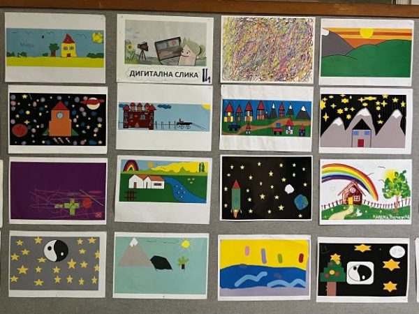 На паноу у ходнику, на првом међуспрату можете погледати наше прве радове у Paint-u... -