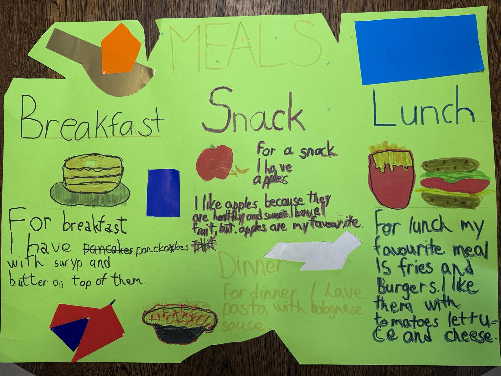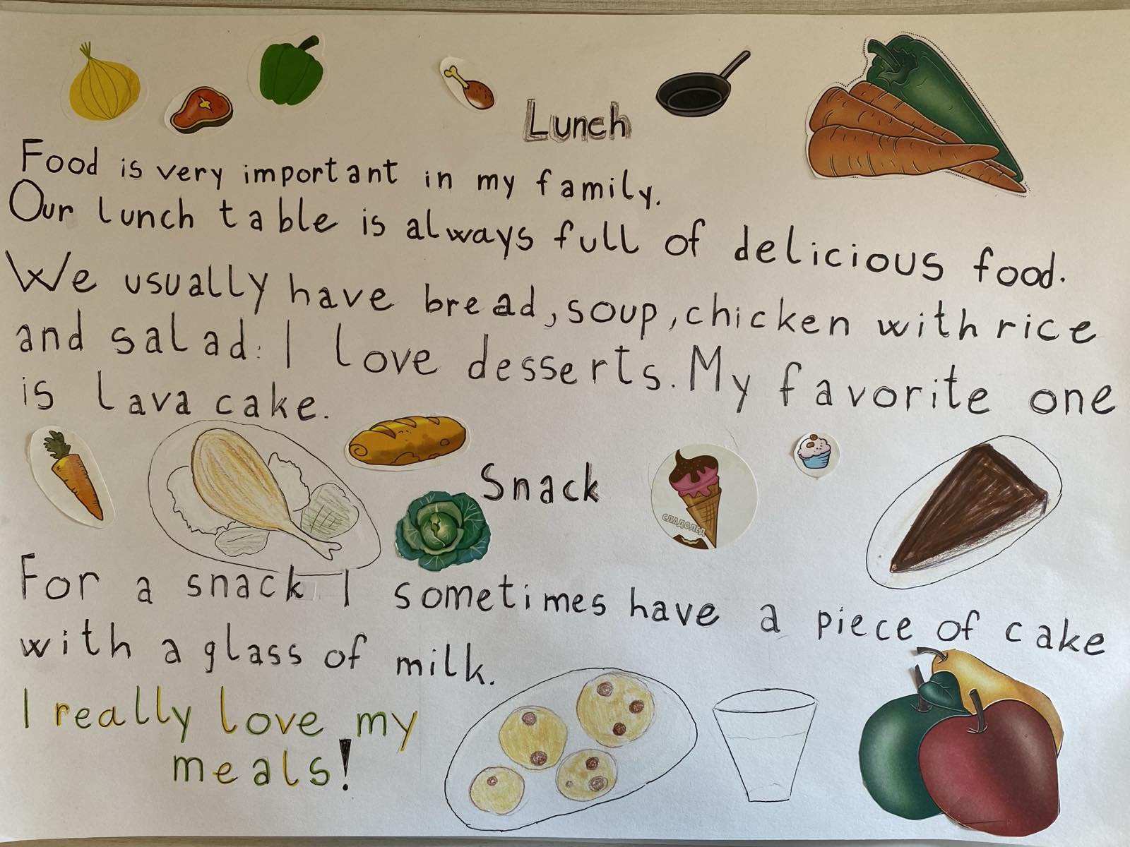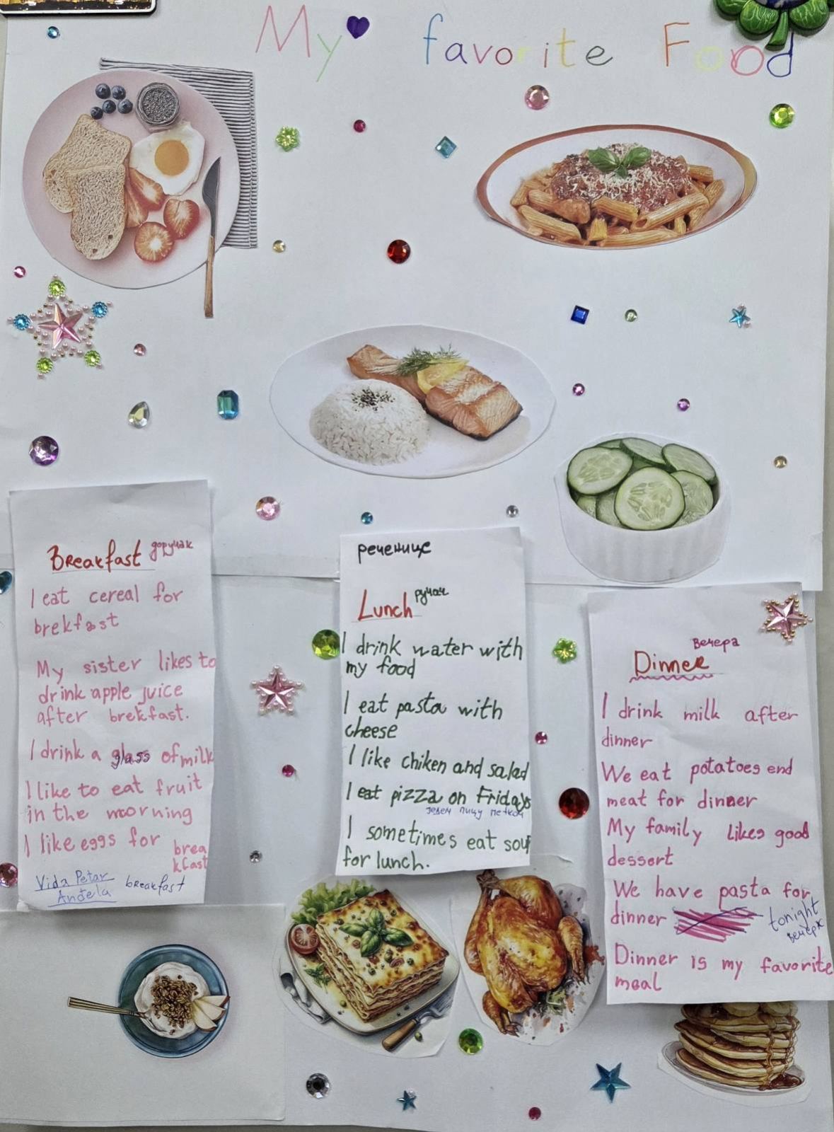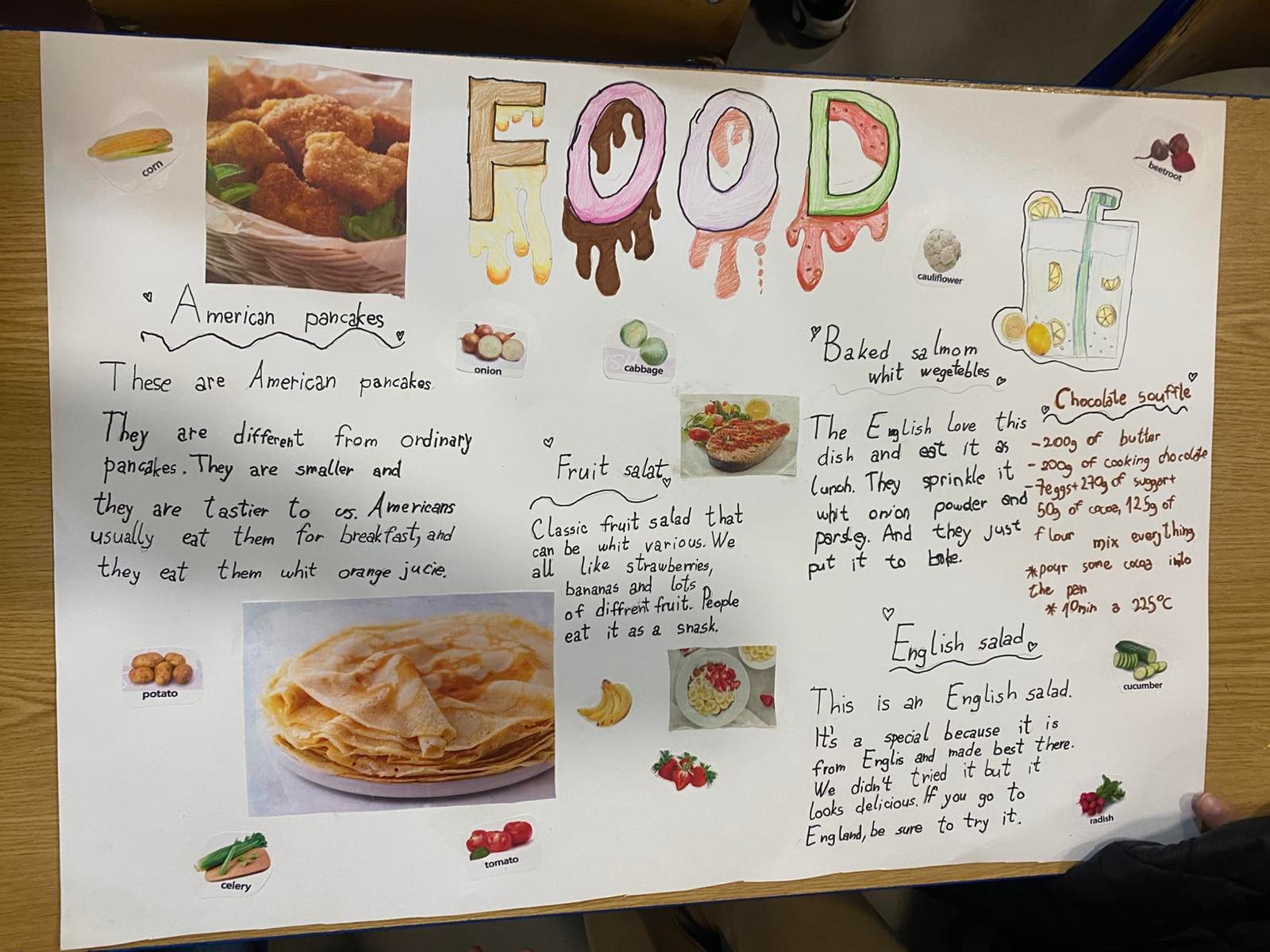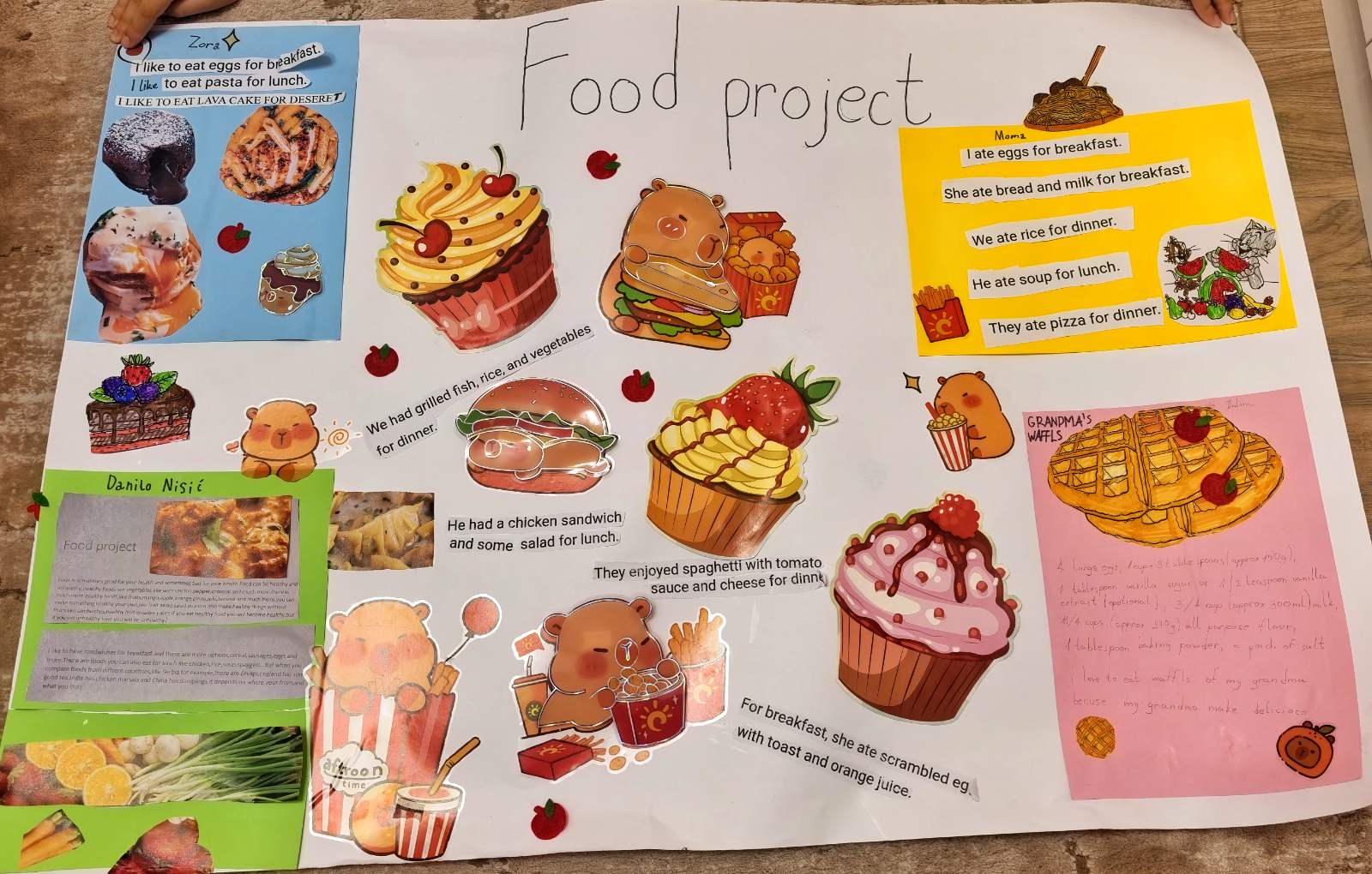 На часу енглеског језика, ученици четвртог разреда су радили пројекат у групама на тему Храна и оброци ( Food and Meals). Ученици су уживали у овом групном раду, тимски сарађивали и обновили вокабулар везан за храну и оброке. Показали су маштовитост и креативност и изразили жељу да чешће раде овакве пројекте.