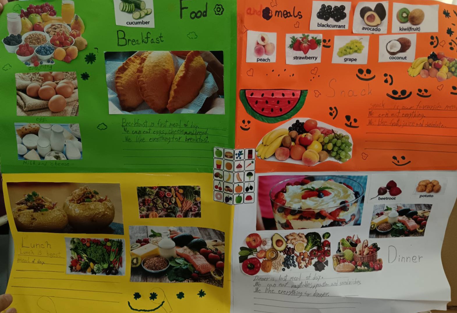 На часу енглеског језика, ученици четвртог разреда су радили пројекат у групама на тему Храна и оброци ( Food and Meals). Ученици су уживали у овом групном раду, тимски сарађивали и обновили вокабулар везан за храну и оброке. Показали су маштовитост и креативност и изразили жељу да чешће раде овакве пројекте.