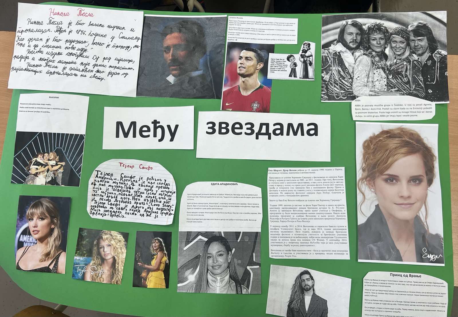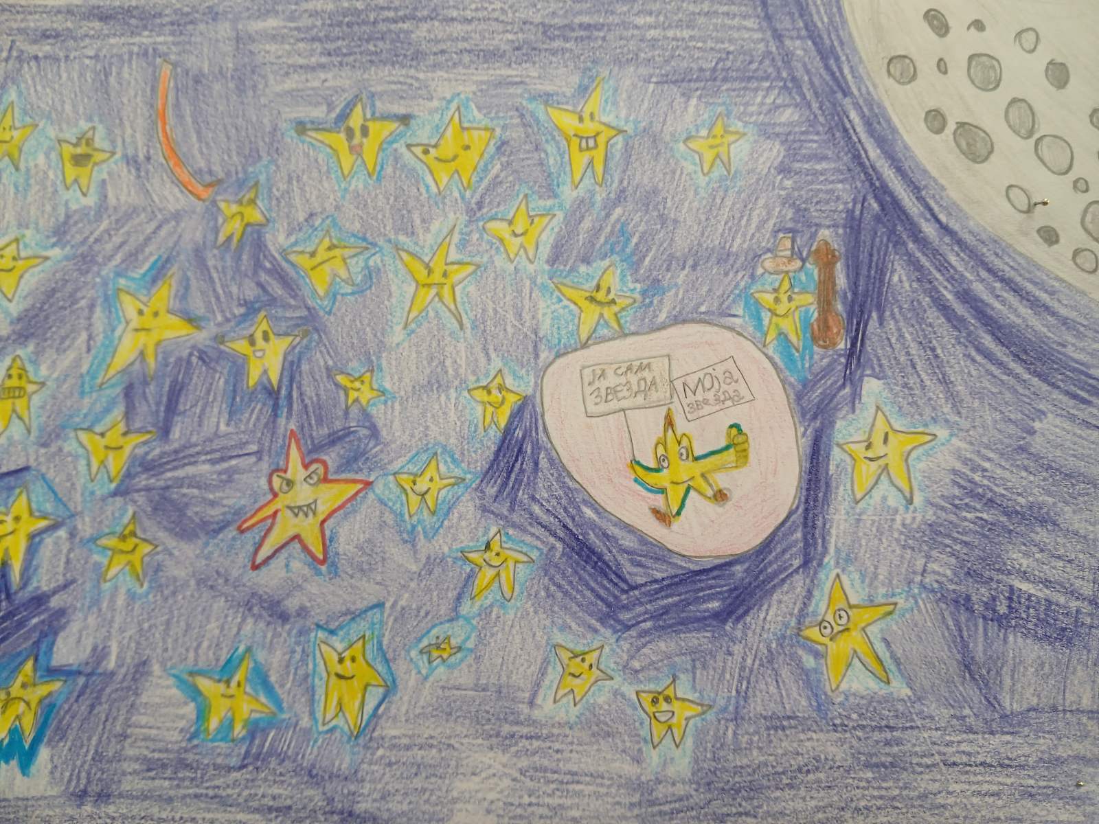 мала”, ,,Чија је оно звезда” и ,,Певам дању, певам ноћу”. На часу физичког вежбали смо елементе спортске гимнастике, посебно положај звезда. Своју маштовитост ученици су исказали на часу ликовног стварајући слике и правећи звезде и свемир комбинованом техником. Час ЧОС-а био је намењен темама – ,,Кад порастем бићу (звезда)” и ,,Како се постаје звезда”. Ово је био дан испуњен учењем, креативношћу и радошћу, а наши другари су још једном показали да могу да сијају као праве звезде.
