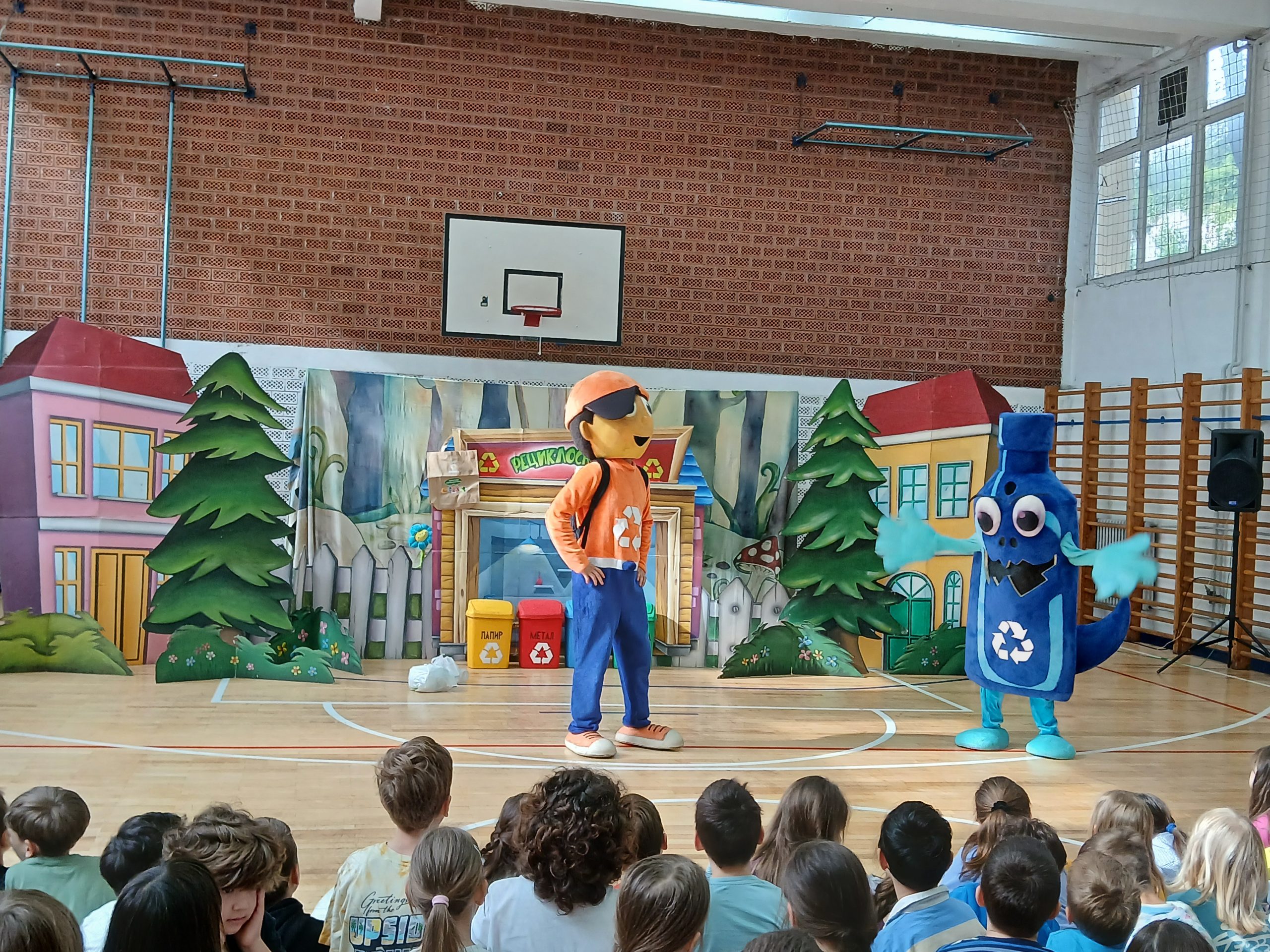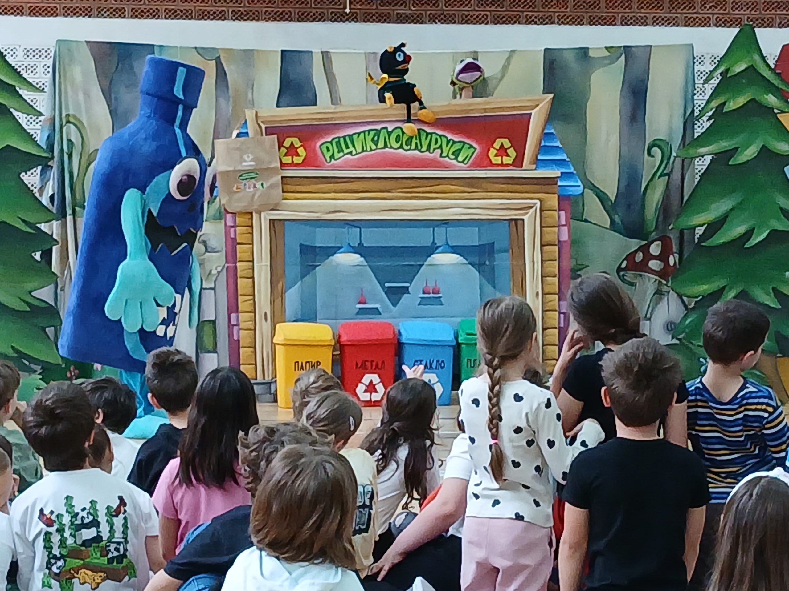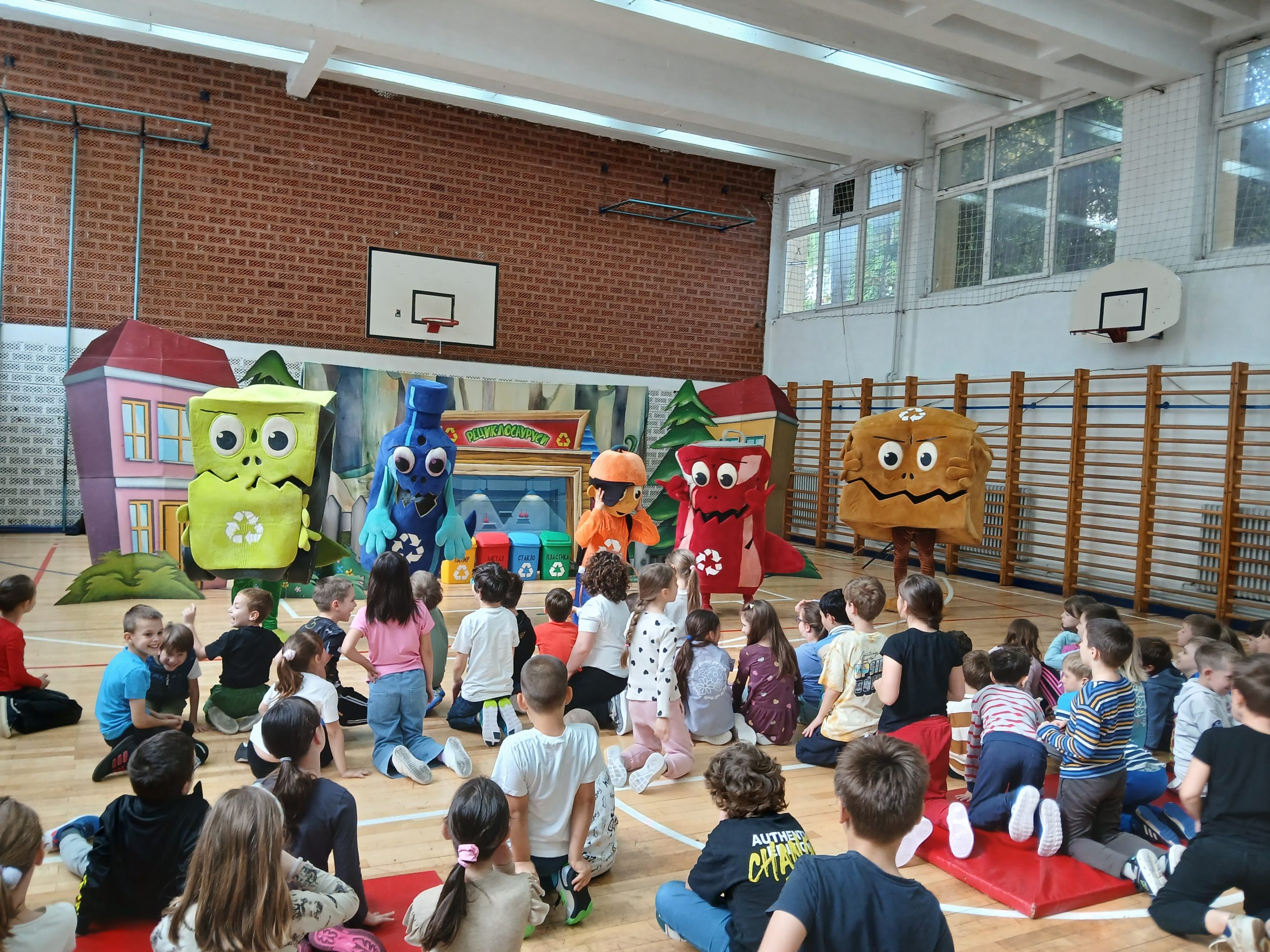 U petak, 23.05.2025.ucenici prvog razreda gledali su pozorisnu predstavu ,,Reciklaurusi“.Predstava je izvedena u okviru akcije JKP Gradska cistoca Beograd i u saradnji sa Gradskom opstinom Vracar.